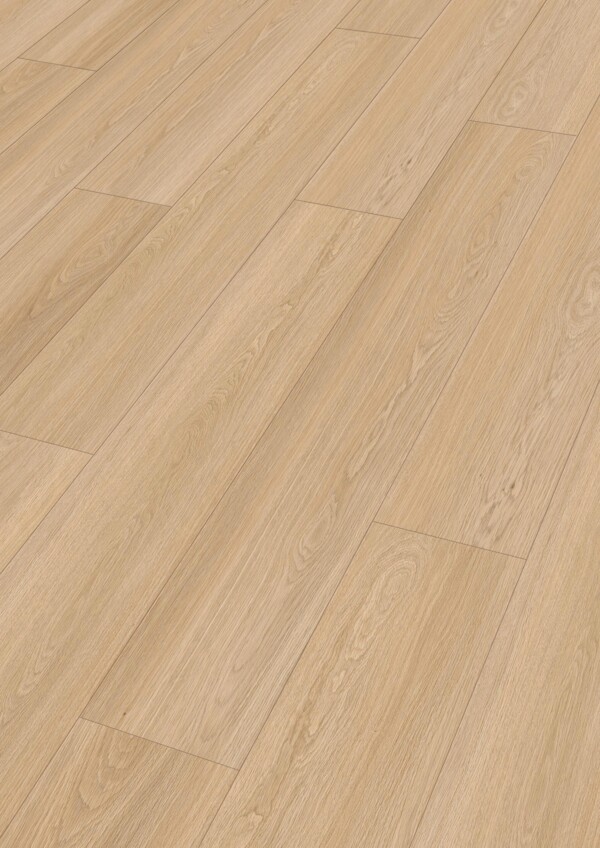 El suelo de diseño Meister Rigid-Vinyl RM 500 S – Beat Poetry se presenta como un maxitablón prémium que combina una estética natural muy cuidada con un alto nivel de rendimiento técnico. Su acabado en roble claro, con estructura sincronizada porosa de poros profundos, reproduce con gran realismo la textura de la madera auténtica, aportando profundidad, naturalidad y un aspecto elegante al conjunto.
