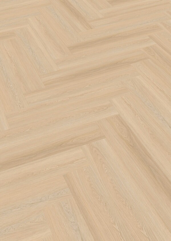 Una opción ideal si buscas un suelo en espiga resistente al agua, con estética de roble claro, un diseño luminoso y una solución duradera y funcional para el día a día.