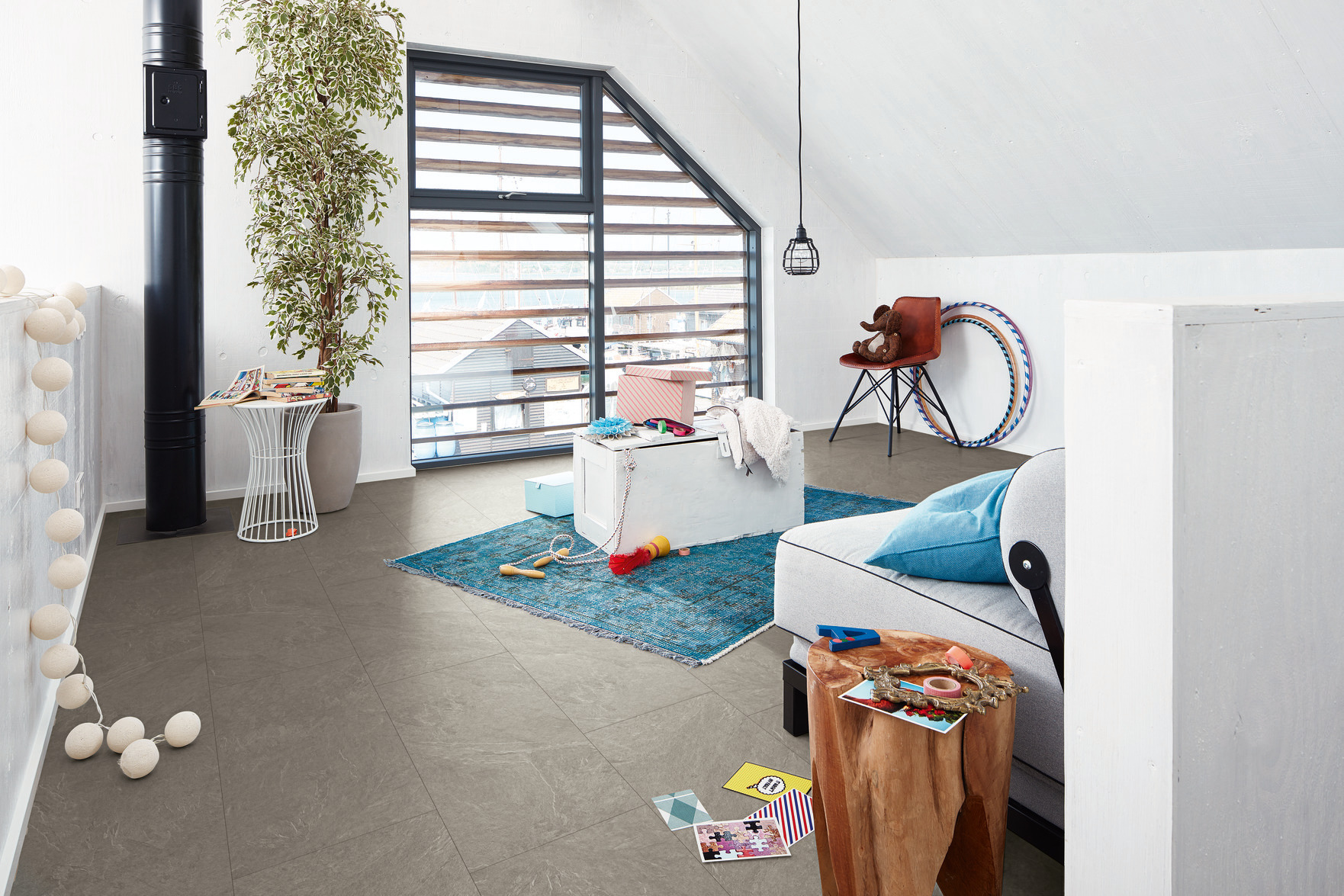 El MeisterDesign. laminate LB 150 – Esquisto gris es un suelo laminado pensado para quienes buscan estética contemporánea, máxima resistencia y versatilidad de uso. Su diseño inspirado en la piedra natural tipo esquisto, combinado con un formato de baldosa, crea una impresión visual moderna y arquitectónica, ideal para interiores actuales y espacios con personalidad.