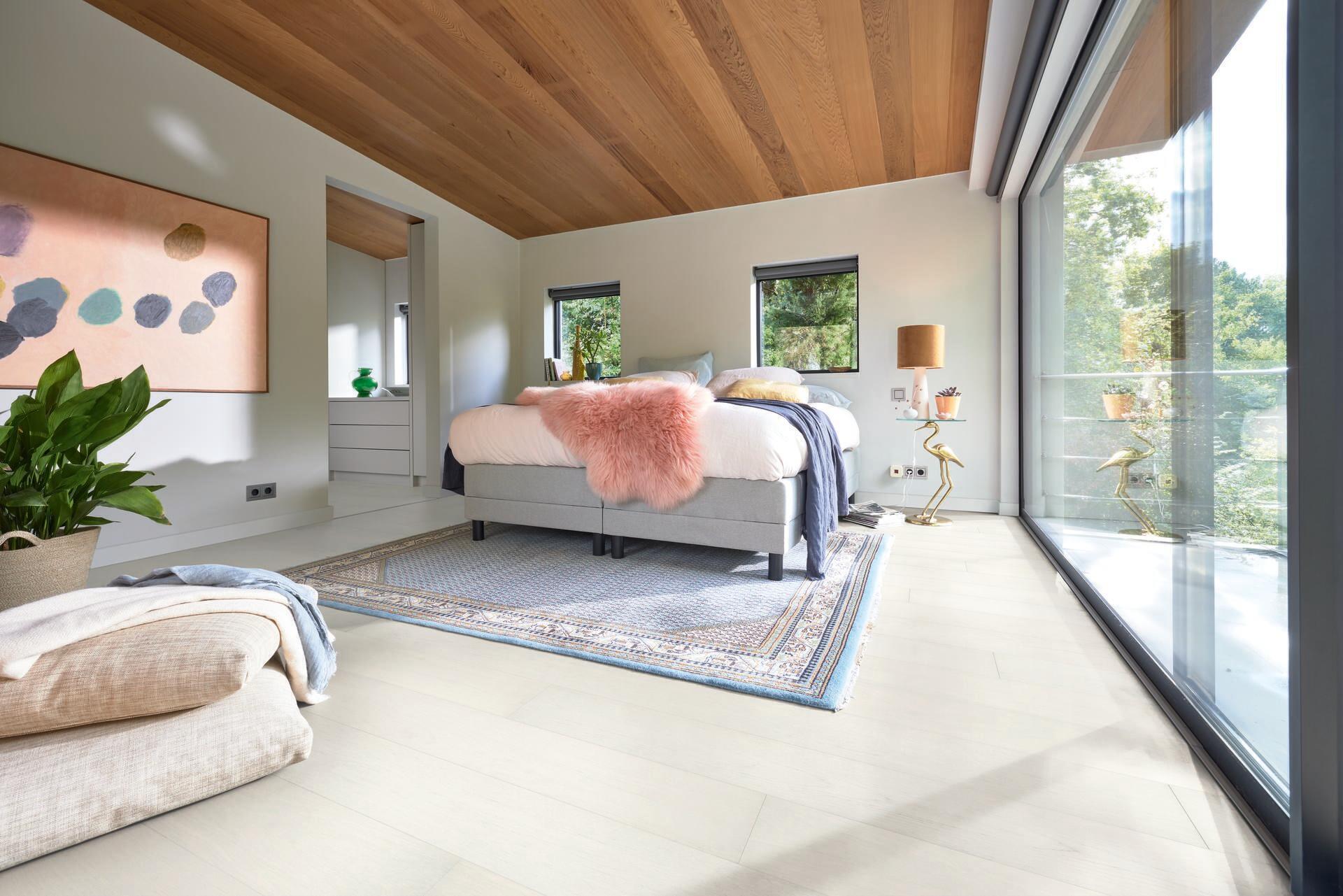 La clasificación armónica ofrece una selección de lamas con vetas equilibradas y un conjunto visual homogéneo, ideal para ambientes serenos y sofisticados. El tono blanco polar aporta máxima luminosidad y una sensación de amplitud, perfecta para interiores modernos y elegantes. La estructura cepillada añade textura y tacto natural, mientras que el bisel en V longitudinal con microbisel en el lado corto define cada tablón y refuerza la percepción de un parquet de alta calidad. Puede instalarse flotante o encolado en toda la superficie mediante el sistema Masterclic Plus, que garantiza una colocación rápida, limpia y segura.