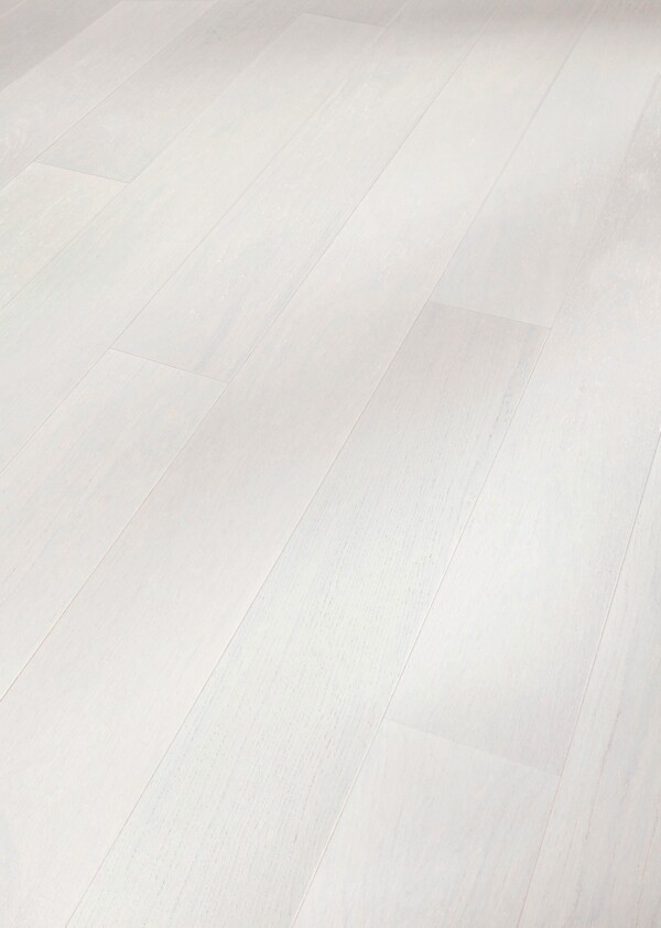 El suelo de madera MeisterParquet. longlife PD 400 – Roble armónico blanco polar representa el equilibrio perfecto entre naturalidad, elegancia y luminosidad. Su formato clásico de tablón de casa de campo, con una longitud de 2,20 m, es uno de los más apreciados por su capacidad para aportar continuidad visual y un carácter atemporal a cualquier espacio.