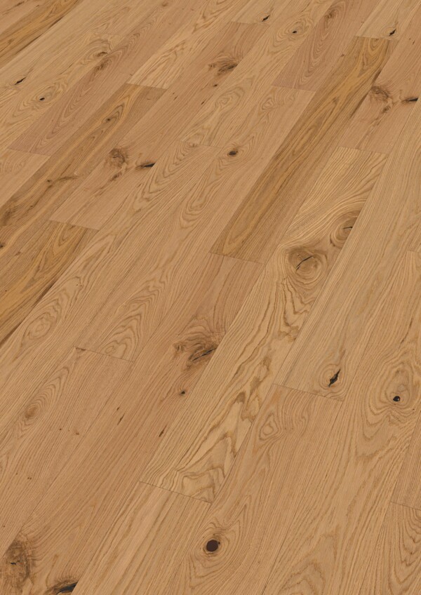 El acabado con barnizado ultramate impregna en profundidad cada poro de la madera, realzando su aspecto extranoble y natural. Además, convierte el suelo en una superficie muy fácil de cuidar, resistente a las manchas y especialmente insensible a los microarañazos, manteniendo su estética impecable con el uso diario.