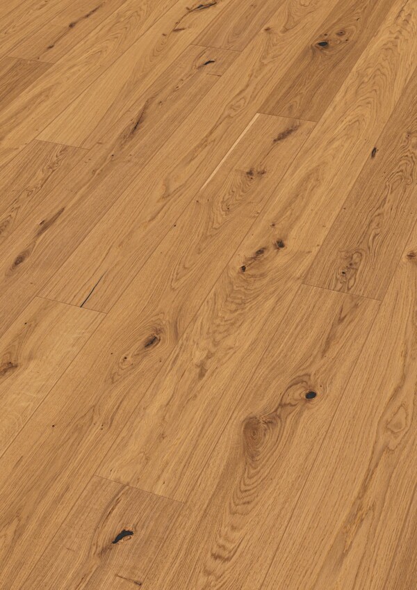 El acabado aceitado natural de alta calidad potencia la calidez del roble y ofrece un tacto muy agradable. La superficie Weartec Nature, elaborada con ceras y aceites procedentes de materias primas naturales renovables, protege la madera respetando su estructura y permitiendo que envejezca de forma auténtica. Además, como toda la gama MeisterParquet. longlife, este suelo es especialmente adecuado para la colocación flotante sobre calefacción por suelo radiante.