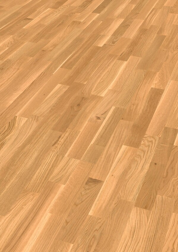 El suelo de madera MeisterParquet. longlife PC 200 – Roble vivo es una propuesta con fuerte personalidad y carácter natural, basada en el clásico patrón de colocación a la inglesa. Este sistema une fragmentos de madera que, en conjunto, crean una superficie variada y dinámica, manteniendo al mismo tiempo una composición equilibrada y armónica, adecuada para estancias de cualquier tamaño.
